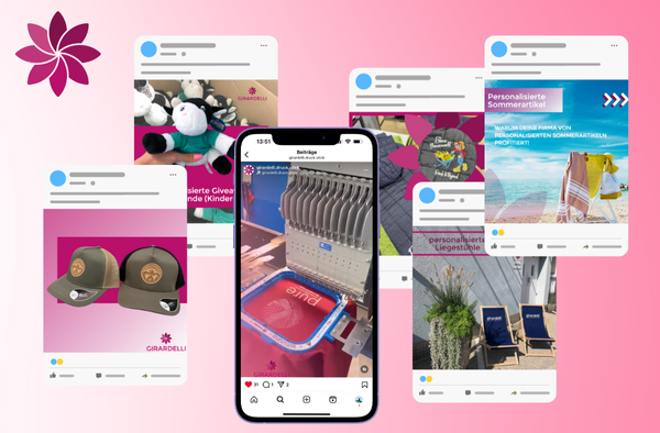 Reels und Stories mit Blick hinter die Kulissen – direkt aus der Druck- und Stickerei.