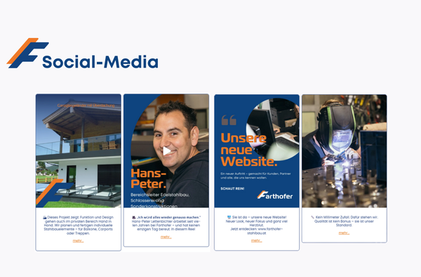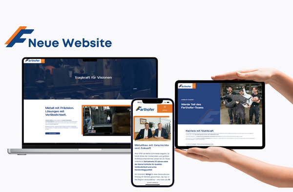 Im ersten Schritt entstand die neue Website www.farthofer-stahlbau.at, die modern, übersichtlich und benutzerfreundlich gestaltet ist.
